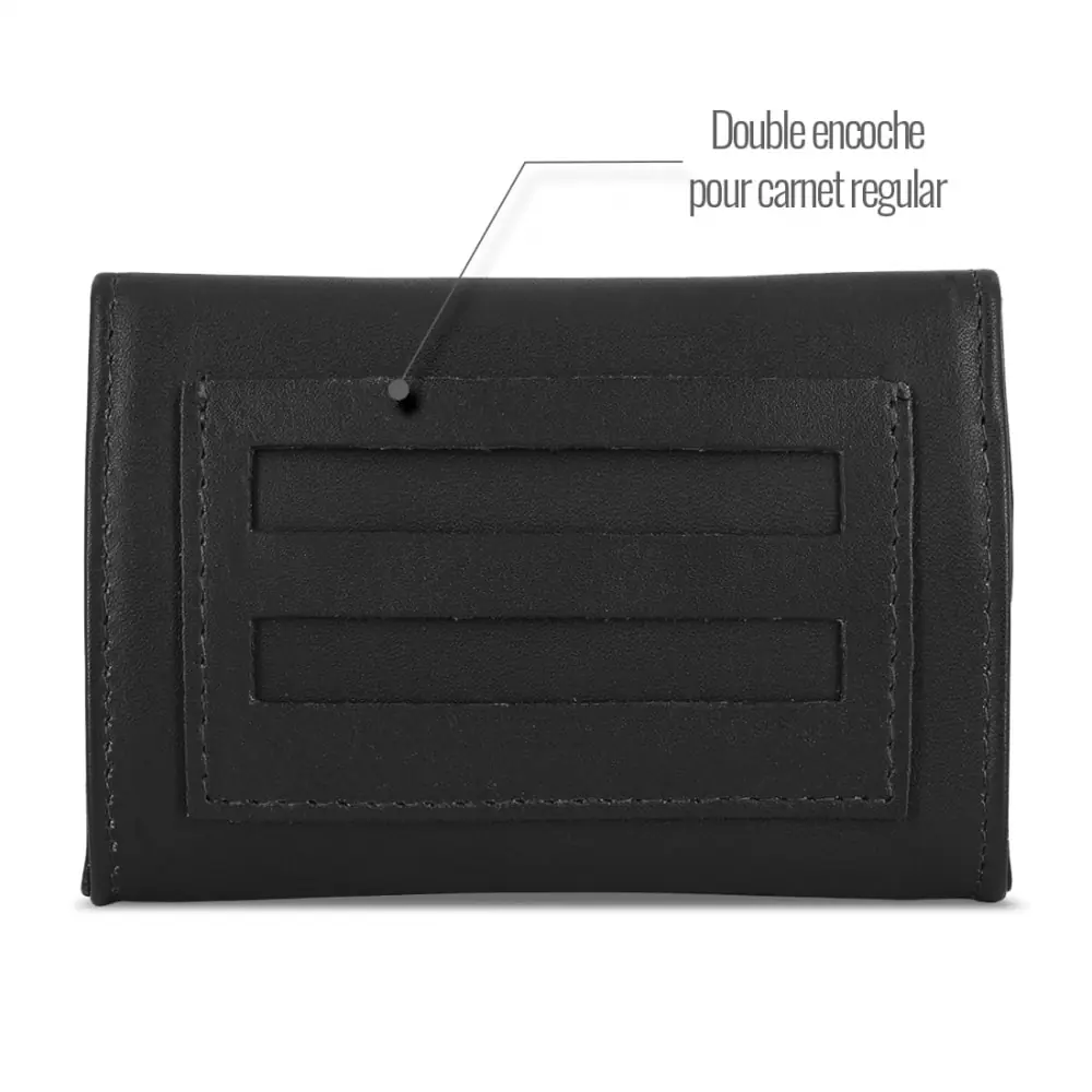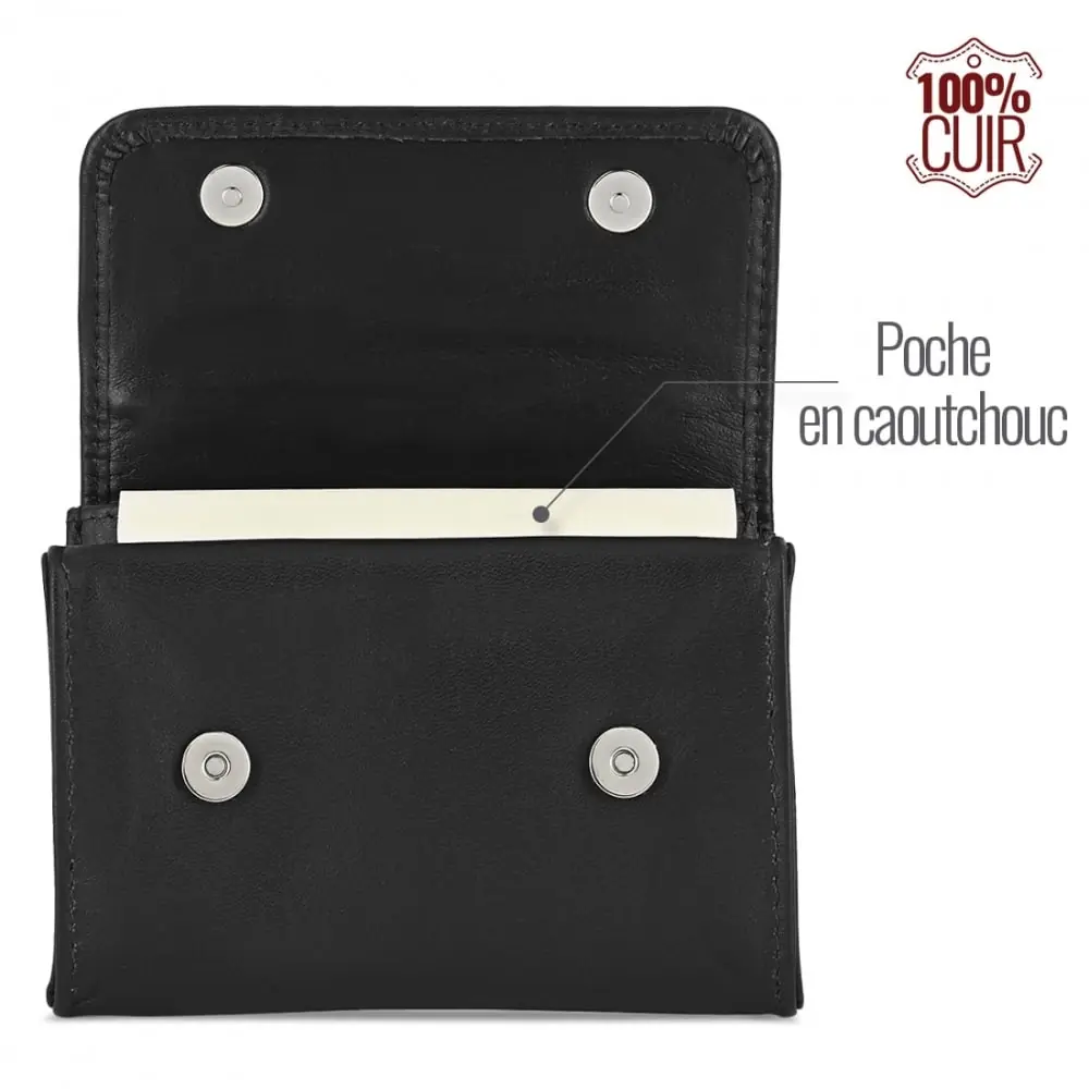dark dice destiny black leather tobacco pouch compact and practical with a compartment for tobacco and a notch for filters. snap closure for optimal preservation of tobacco.