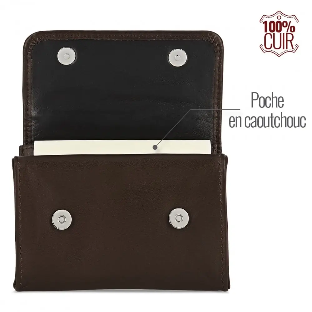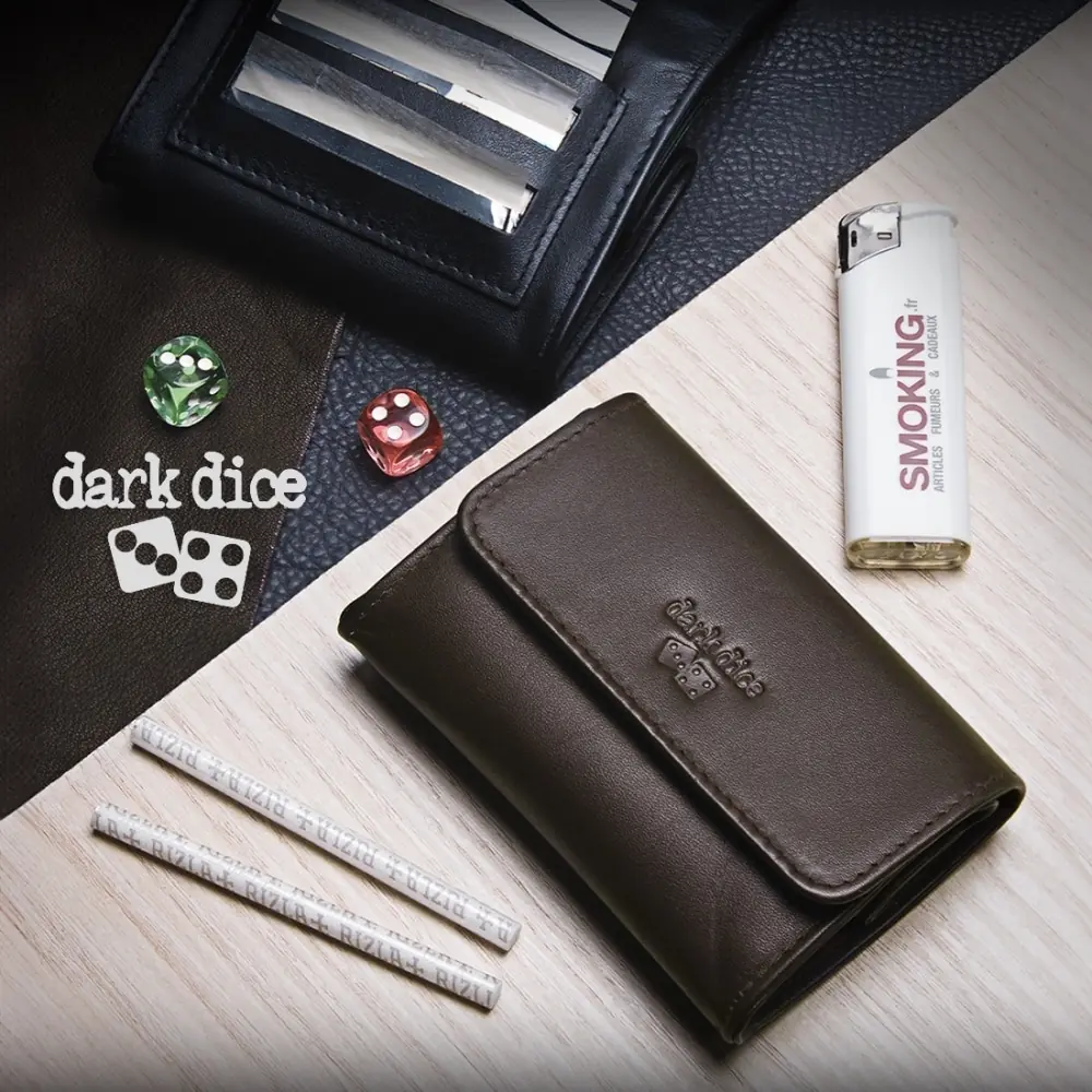 dark dice destiny brown tobacco pouch in synthetic leather compact and practical with its compartments for tobacco filters and leaves. snap closure for optimal preservation of tobacco.