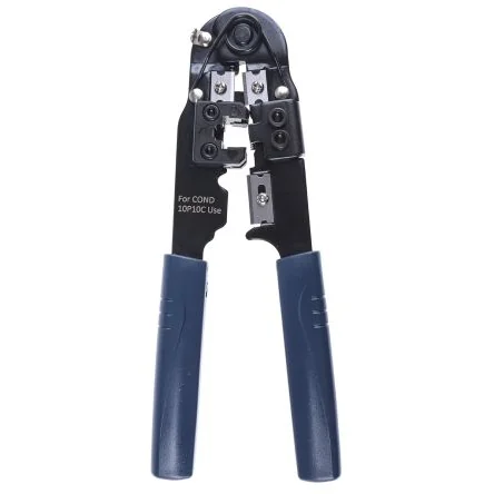 Durable hand crimp tool designed for secure RJ10 connector crimping.