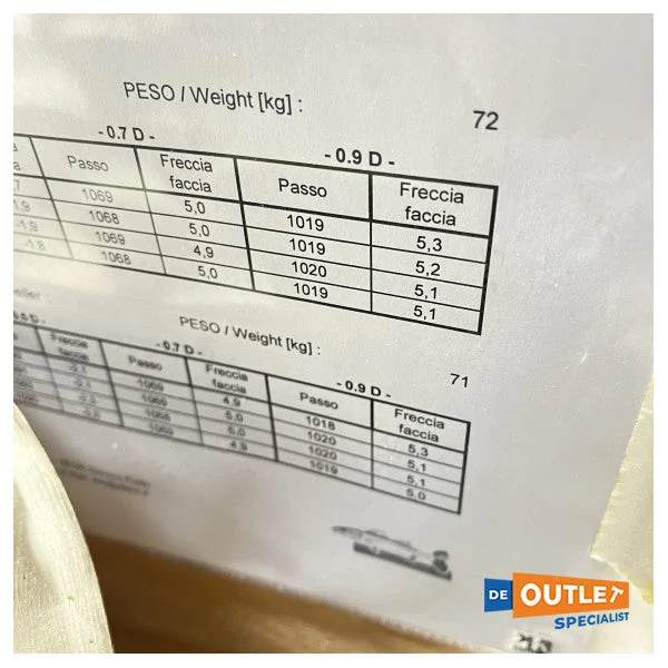 Detra D870 x P1070 Blade-4 Nibral Propeller SX - 08079J Enhance the performance of your vessel with the advanced Detra D870 P1070 Blade-4 Nibral Propeller, featuring the unique code SX - 08079J. This propeller is designed for skippers who demand nothing less than superior efficiency and robustness. Features: Material: Manufactured from a high-quality nibral alloy, a mix of nickel, bronze, and aluminium, this propeller guarantees excellent resistance to corrosion and wear. These properties make it a durable choice for use in all waters. Dimensions: The D870 mm diameter combined with a P1070 mm pitch ensures a harmonious balance between speed and power, making this propeller versatile for various types of vessels, from luxury yachts to efficient commercial craft. Blades: Four precisely designed blades provide powerful and streamlined propulsion. The optimised design reduces vibration levels and contributes to a quieter boating experience. Rotation Direction: The SX code indicates a left-hand (counter-clockwise) orientation, perfect for a twin-engine setup in combination with a right-hand (DX) propeller for improved handling and stability. Installation: Fitting the propeller is straightforward thanks to the perfectly shaped hub that fits the corresponding shaft, allowing you to get back on the water quickly with minimal downtime. Use: This model is specifically designed for various maritime purposes, including recreational boating, professional shipping, and competitive water sports. Benefits: Increased fuel efficiency due to the thoughtful blade design. Minimises engine wear by reducing vibrations. Offers superior acceleration and top performance. Sturdy design that withstands impacts and abrasive influences. Low maintenance thanks to the premium quality material and construction. The Detra D870 P1070 Blade-4 Nibral Propeller SX - 08079J is your go-to choice when you are looking for uncompromising boating performance. Take the step to a higher level in maritime performance and enjoy the durability and craftsmanship that this propeller offers.