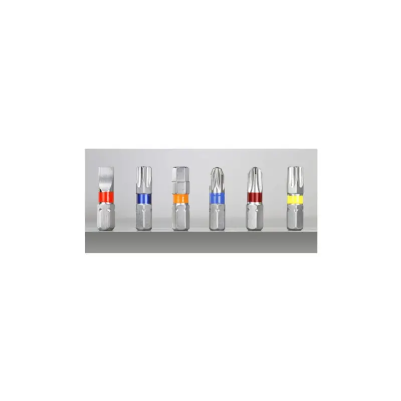 The DEWALT 24-piece screwdriving set - 25 mm bits - DT71516-QZ is a compact and versatile kit that allows you to perform numerous tasks. Its small size makes it easy to carry anywhere. This kit contains 1 locking bit holder, 1 1/4" socket holder, 4 PH cross bits, 4 PZ cross bits, 4 flat bits, 7 Torx bits, and 7 drilled Torx bits.