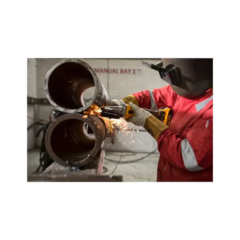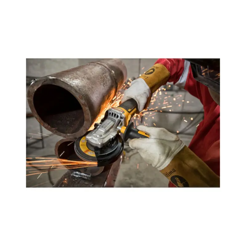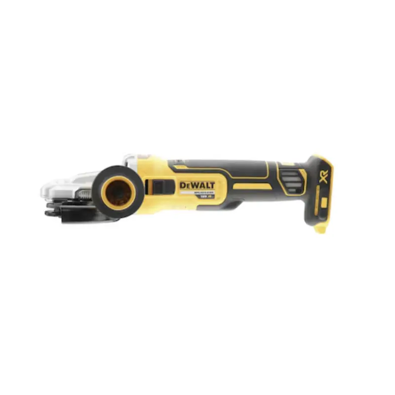 The Brushless XR 18V DEWALT flat head grinder - 125 mm - Without battery or charger - DCG405FN-XJ is suitable for many tasks such as sanding, polishing, grinding, sharpening, cutting, or even honing. This model features a flat head to work more efficiently in tight corners. Thanks to the Brushless motor, performance is optimal and lifespan is extended. Safety is also a priority with the presence of an electronic brake that stops the disc in less than 2 seconds after releasing the trigger, and an electronic clutch protects against kickback if a disc blockage occurs. The grinder is compatible with all 18V DeWalt batteries (sold separately).
