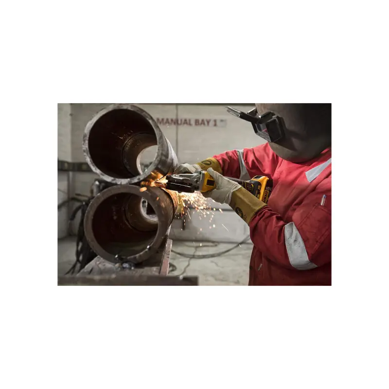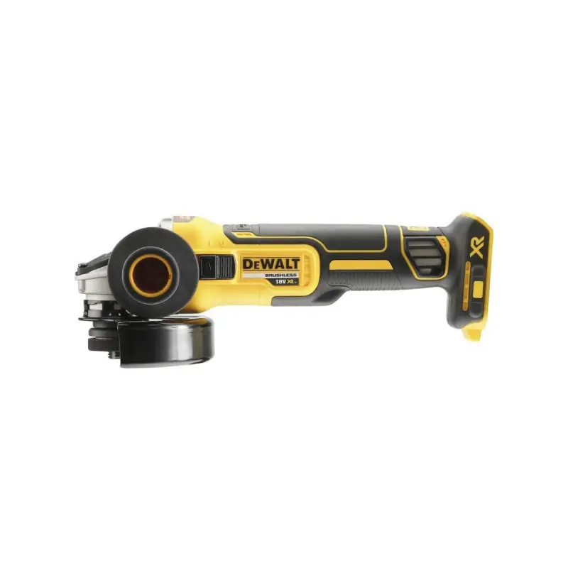 The Brushless XR 18V DEWALT Grinder - 125 mm - Without battery or charger - DCG405NT-XJ is suitable for many tasks such as sanding, polishing, grinding, sharpening, cutting, or even honing. Thanks to the Brushless motor, performance is optimised and lifespan is extended. Safety is also a priority with the presence of an electronic brake that stops the disc in less than 2 seconds after releasing the trigger, and an electronic clutch protects against kickback if a disc blockage occurs. The grinder is compatible with all 18V DeWalt batteries (sold separately).