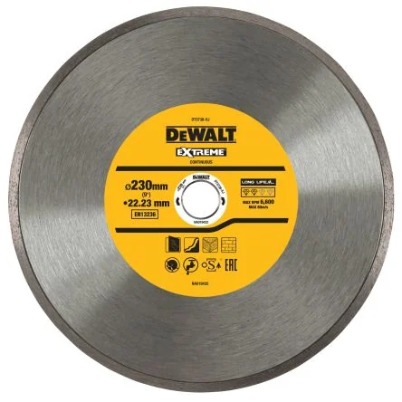 Achieve precise cuts with the DeWALT 230mm Diamond Cutting Disc, designed for durability and efficiency.