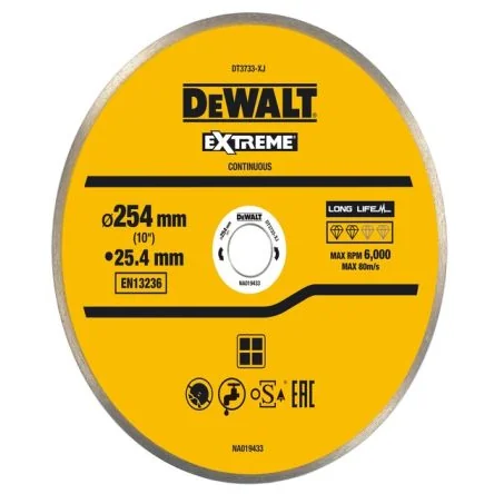 Experience precision cutting with the DeWALT 254mm Diamond Cutting Wheel, designed for durability and efficiency.