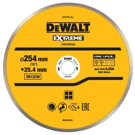 Experience precision cutting with the DeWALT 254mm Diamond Cutting Wheel, designed for durability and efficiency.