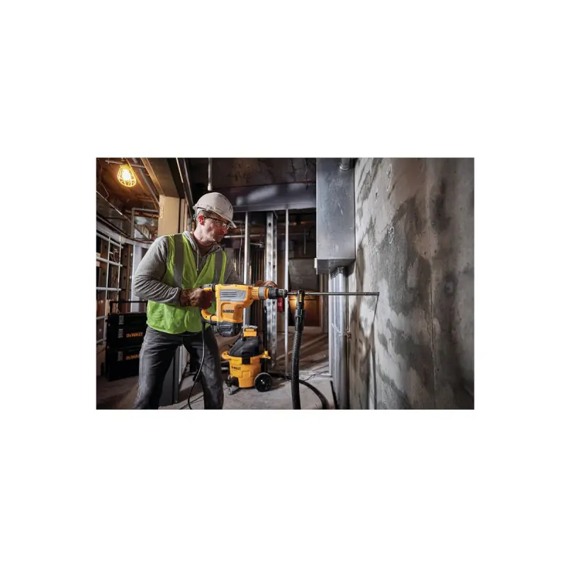 The SDS-Max DEWALT Hammer Drill - 10.5 Joules - 45mm - D25614K-QS is the powerful tool you need to create anchor or through holes in concrete from 12 to 45 mm. You can also drill with 150 mm concrete core bits. With a power of 10.5 Joules, even hard concrete won't stand a chance. In addition to offering optimal performance, this tool weighs less than 8 kg, which helps reduce fatigue during use. Safety is not overlooked with an anti-rotation system that detects loss of control of the drill and immediately cuts off the power supply.