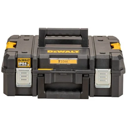 The DeWALT shallow TSTAK box used IP54 rated water seal which providing water and dust protection to the tools and fixings inside the box. In that metal pin design provide longer life and metal pin latches allowing TSTAK module to be connected together. In this heavy duty front laches increasing strength, durability and longevity.Lockable via padlock 30KG load capacity Front and top carry handles