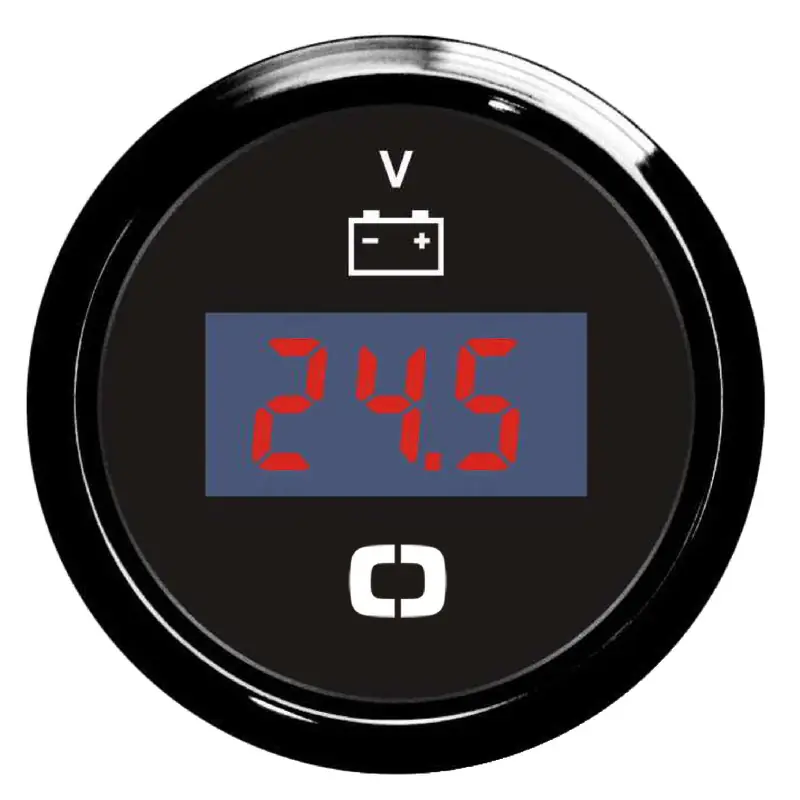 Accurate digital voltmeter for 8/32V systems with a sleek black glossy design.