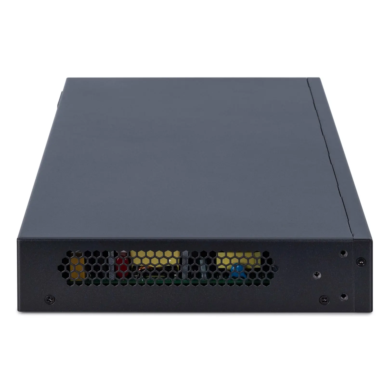 Minimization of cabling effort for PoE-capable devices- 16 10G ports with PoE+ support- 250 watts of power with up to 30 watts per port- Compatible with the IEEE802.3at standards- Automatic overvoltage protection- Supports bandwidths up to 10GbpsThe DIGITUS® DN-95116 is a 16 port 10G PoE+ mid-span hub (PoE injector). It offers 16 input ports for data and 16 output ports that provide data and PoE. Each PoE port supports connected devices according to the PoE standard IEEE802.3af and IEEE802.3at with 15.4 watts and 30 watts respectively, such as PoE access points, PoE IP telephones or PoE IP cameras. The switch provides a maximum budget of 250 watts for all ports and a maximum budget of 30 watts per port.