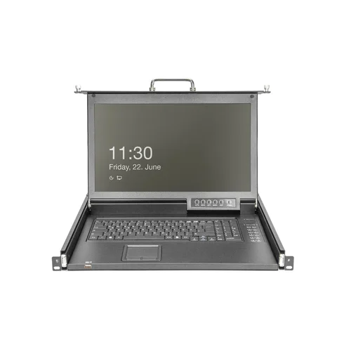 Maximum flexibility in the administration of the server farm- TFT monitor 43.2 cm (17"), with anti-reflective, shatter-proof protective glass pane- The console can be completely pulled out of the server cabinet and the TFT screen can be tilted by 120 degrees- Supports various cabinets from 800mm to 1200mm depth- All KVM cables are included in the scope of delivery- Full HD 1080P resolution- 1x USB peripheral port in the console area- LED display for the connection status- Contrast ratio: 1000:1- Supports: 16.7 M colors- Including 1 port VGA adapterThe Digitus HD LCD KVM console - with a 17" TFT monitor with anti-reflective and shatter-proof protective glass. The console can be completely pulled out of the server cabinet and the TFT screen can be tilted by 120 degrees. This console supports various cabinets from 800mm to 1200mm depth and comes complete with all KVM cables. With full HD resolution of 1080P and LED indicator for connection status, this console also features a USB peripheral port in the console area. Enjoy up to 85% more space and a contrast ratio of 1000:1 and support for 16.7 million colors with this console. The package includes a 1-port VGA adapter, a keyboard and a touch-board mouse with two function keys. With a modular and expandable design, this console can also be cascaded.