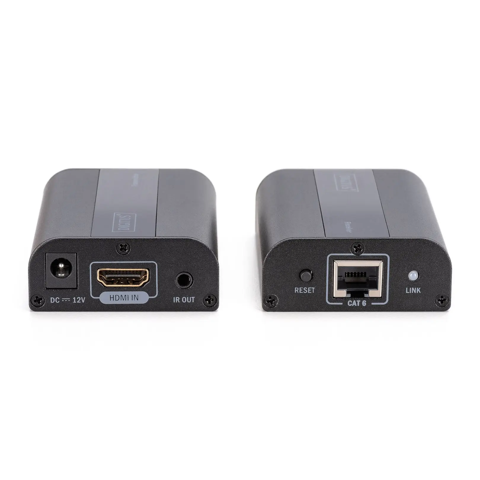 Extends the maximum length for HDMI cables to up to 70 m using only a single network cable between a transmitter and a receiver unit- Extends 4K/60Hz video content up to 70 m- Supports Ultra HD (60Hz), 4096 x 2160p resolution- PoC (Power over Cable) - only one unit requires an external power supply unit- Integrated IR interface - simple control of the input source with a remote control- Supports CAT 6 or higher network cables- Supports HDCP 2.2The Digitus 4K Extender Set offers an extender solution for the highest demands - both for high-resolution graphics display and for absolutely smooth video playback. It transmits digital 4K/60Hz video and audio signals over a maximum length of up to 70 m. CAT 6 or higher network cables are supported. It consists of a transmitter and receiver unit. Also included are two infrared units (transmitter, receiver) via which the remote control of the connected input source can be used.