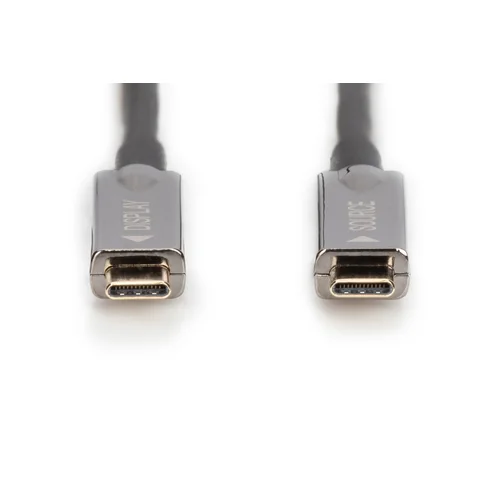 Transfer of uncompressed video and audio signals in UHD 4K resolution with 21.6 Gbps bandwidth.- The active USB Type C AOC AV Connection Cable is based on a hybrid construction with copper and fiber optic cable, making bandwidths of up to 21.6 Gbit/s.- The sturdy, flexible cable also stands out thanks to its low bending radius and a very good transfer of uncompressed audio and video signals over long distances.- The hybrid fiber optic cable offers additional benefits such as a very tight bending radius and low weight. These features do not negatively affect the high image quality or the ease of the Plug & Play installation.- Thanks to cutting-edge chip technology and immunity to electromagnetic interference, the cable is ideal for home theatres, meeting rooms, conference rooms, and other video wiring setups- No external power supply required- Meets the DisplayPort 1.2 specification and is compatible with DP Alternate Mode to USB Type C Standard.- Compatible with all USB Type C video interface devicesThis active USB Type-C AOC AV Connection Cable is ideally suited for transferring uncompressed video and audio data with high bandwidth over longer distances. The hybrid construction, which uses copper and fiber optic cable, prevents electromagnetic interference. This ensures a loss-free transfer along the entire length of the cable with UHD resolution of up to 4K/60Hz and bandwidths of up to 21.6 Gbps. The use of fiber optic cable keeps the diameter of this active cable very low and gives it a very tight bending radius and low weight. It is ideal for use in homes, meeting rooms, and conference rooms as well as within buildings — and these are just a few of the possible uses. Simply connect your notebook with a USB Type C output to a monitor with a USB Type C input. The simple Plug and Play installation is user-friendly; just plug it in and immediately enjoy optimal image quality. The adapter cable is unidirectional (USB Type C = input device, USB Type C = output device).