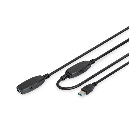 You can also use remote USB devices with this active USB 3.0 extension cable with signal amplifier- Stable signal transmission thanks to active signal amplifier- No power loss despite 10 m cable length- Data transfer rates up to 5 Gbps- LED function indicator- Plug-and-play - plug in and get started- Connect remote USB 3.0 devices as wellConnect more distant USB 3.0 devices using this active extension cable. Benefit from stable connections and avoid power losses even at greater distances using the integrated signal amplifier. The integrated LED function indicator signals the status of the signal amplifier. Connect your USB 3.0 devices such as printers or scanners to your PC or laptop even over greater distances. The integrated electronics ensures smooth data transfer without loss at all times. With the active USB 3.0 extension cable series, DIGITUS® offers solutions from 10 to 20 m in length. No more connection problems when using longer USB cable connections!