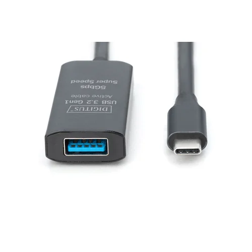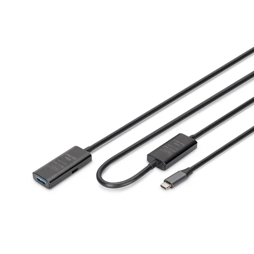The Digitus USB 3.2 Gen1 active extension extends the cable length of a USB 3.2 device by 10m and guarantees a fast data transfer rate of 5 Gbit/s over the entire length.- Bridges distances of up to 10 m without loss thanks to active signal amplifier- Data transfer rates of up to 5 Gbit/s, ideal for large files and high-resolution media- Plug & Play - plug in and get started- Universal compatibility - USB-C male to USB-A female, compatible with all USB-C devices- Flexibility thanks to 10 m length - for optimum device connectionsThe active USB 3.2 Gen1 cable extension from Digitus extends the range of your USB devices by 10 meters and still enables fast data transfers of up to 5 Gbit/s. Suitable for your devices such as memory sticks, tablets or smartphones - even over longer distances without any loss of speed. This cable is ideal for conference/meeting rooms, if you want to connect your webcam or if you need to connect a USB device at a greater distance, such as a multifunctional hub with various interfaces, or devices that are difficult to reach. Simply plug and play your notebook/PC with USB-C connection to the cable of your end device. No more connection problems with longer USB cable connections!