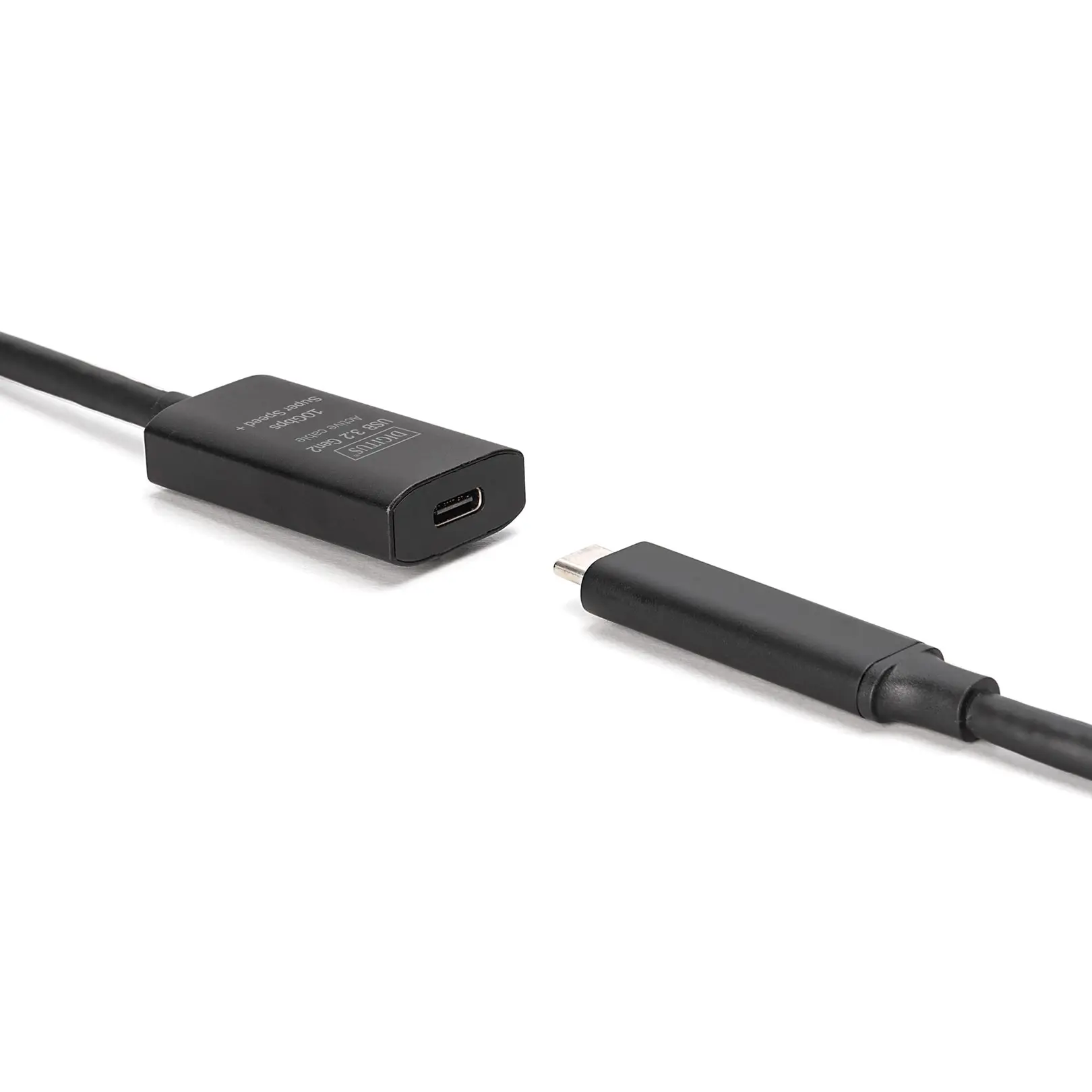 The Digitus USB 3.2 Gen2 active extension extends the cable length of a USB 3.2 device by 5m and guarantees a fast data transfer rate of 10 Gbit/s over the entire length.- Bridges distances of up to 5 m without loss thanks to active signal amplifier- Data transfer rates of up to 10 Gbit/s, ideal for large files and high-resolution media- Plug & Play - plug in and get started- Universal compatibility - USB-C male to USB-C female, compatible with all USB-C devices- Flexibility thanks to 5 m length - for optimum device connectionsThe active USB 3.2 Gen2 cable extension from Digitus extends the range of your USB devices by 5 meters and still enables fast data transfers of up to 10 Gbit/s. Suitable for your devices such as memory sticks, tablets or smartphones - even over longer distances without any loss of speed. This cable is ideal for conference/meeting rooms, if you want to connect your webcam or if you need to connect a USB device at a greater distance, such as a multifunctional hub with various interfaces, or devices that are difficult to reach. Simply plug and play your notebook/PC with USB-C connection to the cable of your end device. No more connection problems with longer USB cable connections!