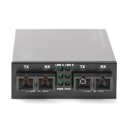 Easily convert between multimode and singlemode fiber optic with the Digitus media converter, supporting distances up to 20km.