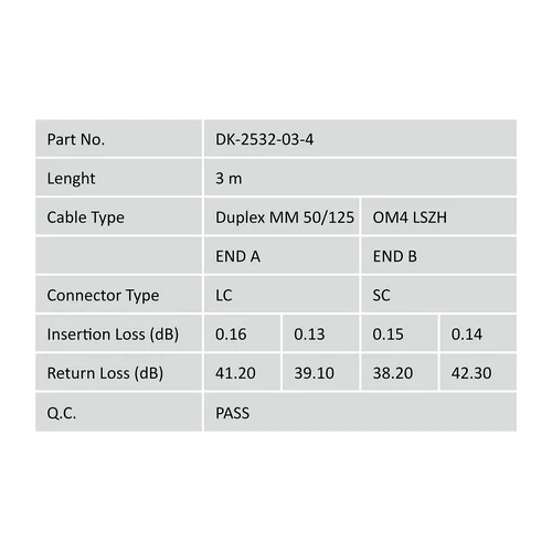 Digitus Fiber Optic Multimode Patch Cord, OM4, Lc / Sc - Dk-2532-03-4