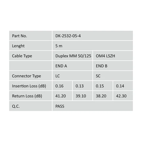 Digitus Fiber Optic Multimode Patch Cord, OM4, Lc / Sc - Dk-2532-05-4