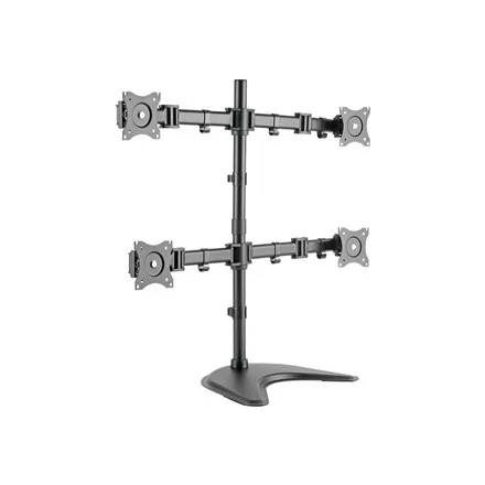 Universal Quad Monitor mount with stand/clamp option for screens up to 69 cm (27")- Universally suitable for all LED and LCD monitors up to 27" with a mounting option in accordance with the VESA standard- Stand for flexible arrangement of your monitors on your desktop- Stand and clamp mounting included in the scope of deliveryFlexible universal monitor mount for setting up 4 screens in perfect alignment. Easy to swivel both horizontally and vertically. Simply adjust the viewing height as needed. Thanks to the micro adjustment of the heads you can easily match the height of even slightly different monitors. The monitor stand allows you to install LED and LCD monitors of all brands. Simply note the VESA size and the weights of your monitors in order to select an approriate stand.