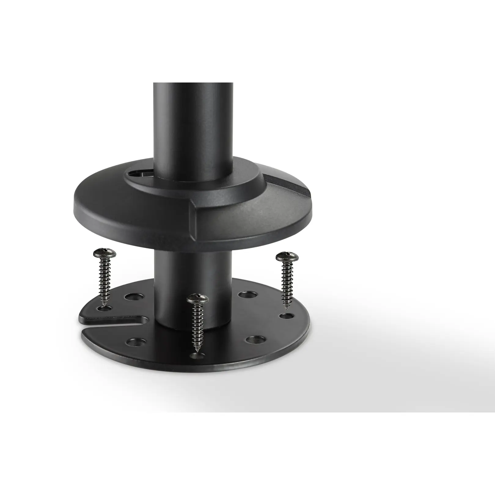 Pole mount for mounting monitors at any position with screw fixture- Perfectly adjusted ergonomic monitor position for all heights- For displays from 15" to 32" (VESA 75 / 100), up to 8 kg (per monitor)- Monitors can be pivoted, inclined and rotated- With quick release function for easy and fast monitor installation- Suitable for flat and curved displays- Integrated cable managementThe universal monitor pole mount from DIGITUS® can hold a monitor from 15" to 32". The quick release function also makes it easier for you to install the monitor. The VESA bracket is simply inserted into the corresponding mount and fastened with a screw. Without a great deal of effort, you can arrange the monitor according to your needs and pivot, incline or rotate the monitor, for instance for monitors in portrait mode. Do a good deed for yourself and your health by adjusting your monitor optimally for your body and your sitting position. The monitor cables can be stored in an orderly fashion using the cable routing included in delivery.