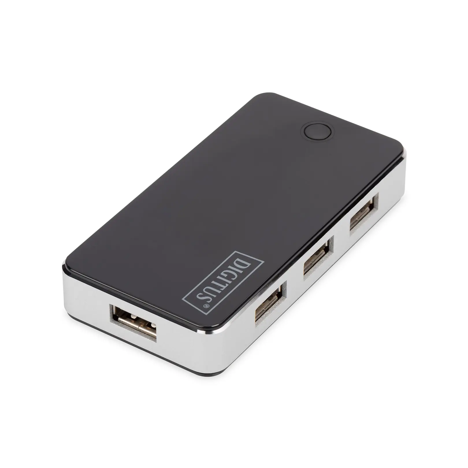 Extend your connectivity!- Adds up to seven USB ports- HighSpeed data transfer rates of up to 480 Mbps- Plug & Play – does not require additional installation of driversThe DIGITUS USB 2.0 7-Port hub makes it simple to connect up to 7 USB devices the same time to a PC or Mac. Plug in your favorite USB devices and profit from the very fast connection. This product has a clear and elegant design with a piano-black finish on the top and bottom surface, as well as an aluminium edge.