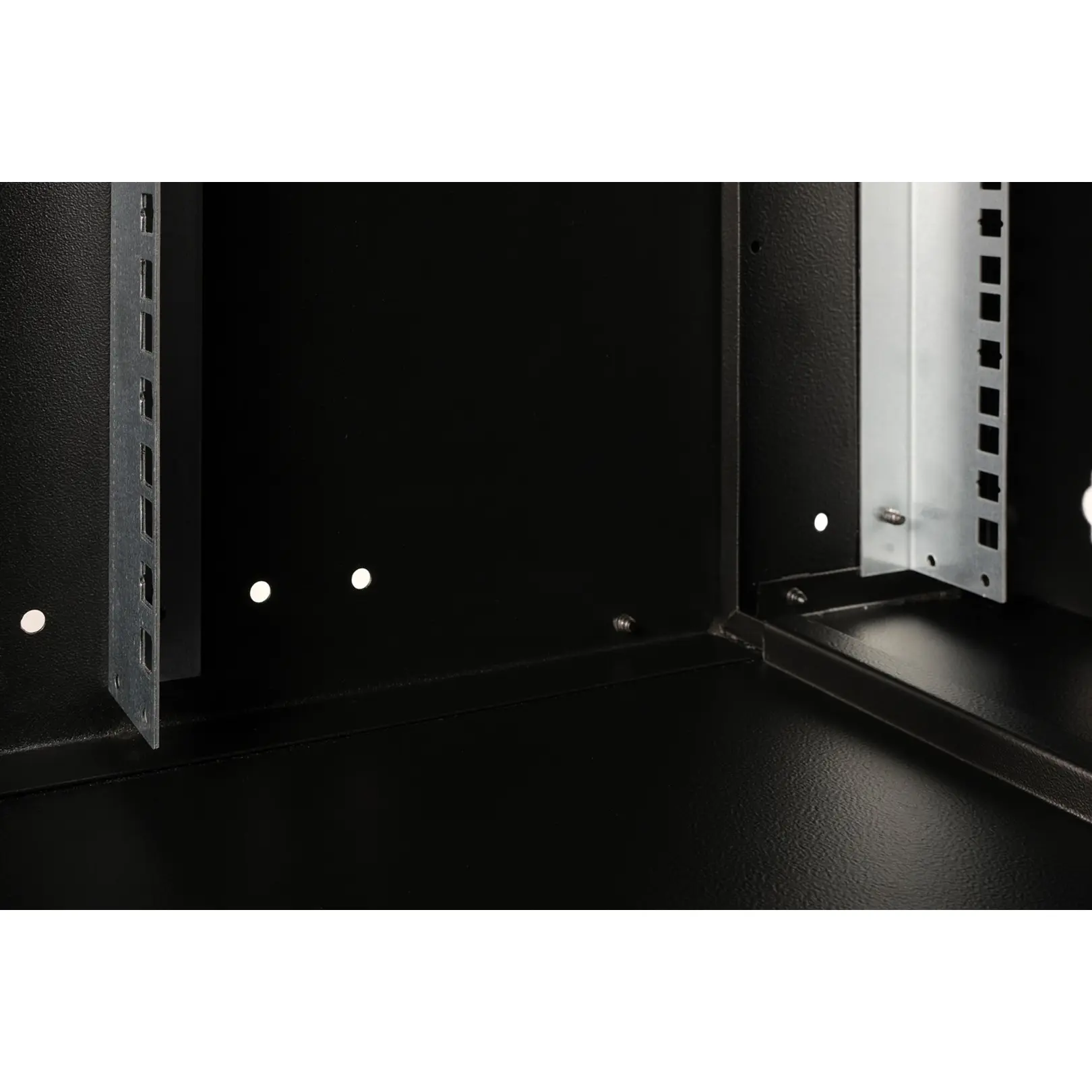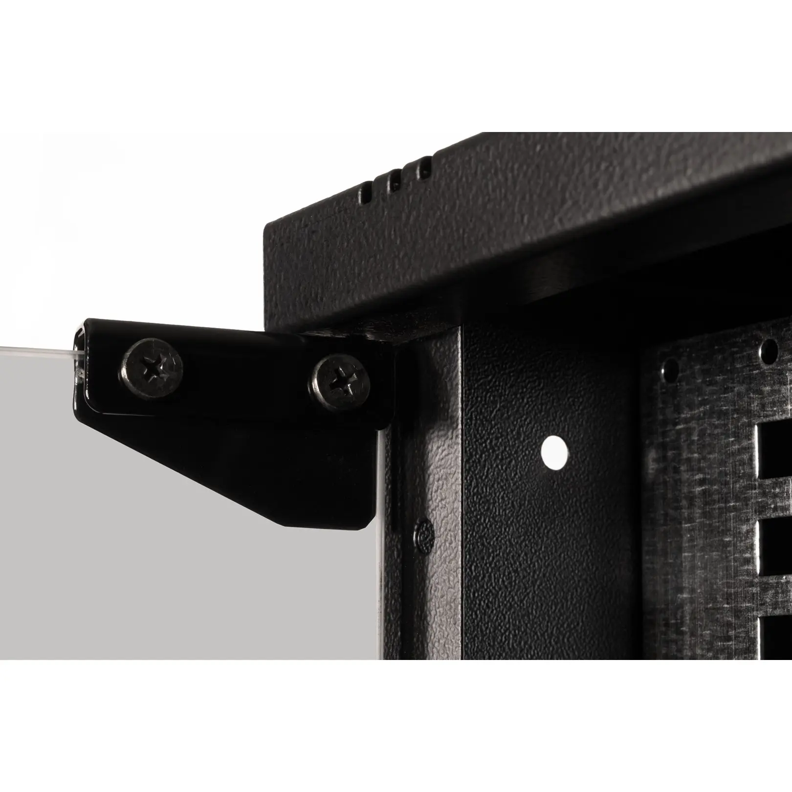The DIGITUS® wall-mounted enclosure SOHO PRO series is characterized by its efficient delivery in an optimized flat pack and particularly user-friendly installation.- Compact housing for 483 mm (19") installations- Simplified logistics: delivered unassembled in an optimized flat pack- Quickly ready for use: Particularly user-friendly, quick installation with just a few screws- Flexible cable routing options thanks to protected openings in the roof and floor- Lockable safety glass door with 200° door opening angle- Depth-adjustable 483 mm (19") profile rails- Load capacity for the installation of components: 60 kgWhether in the home, office or for sub-distribution boards with limited space: With the compact 483 mm (19") solutions from the SOHO PRO series, you can install your network wherever you want. Available in four height units (4U, 7U, 9U, 12U), the wall-mounted enclosures are equipped with a full glass door and a cable entry in the top and bottom. Two pairs of galvanized 483 mm (19") profile rails, labelled with legible height units, are installed inside. These can be adjusted in depth. Each cabinet is a robust steel construction made of up to 1.5 mm thick sheet steel. The coloring takes the form of electrostatic powder coating in the standard colors grey (RAL 7035) and black (RAL 9005). The door hinges can be changed. The network enclosures are supplied unassembled in an optimized flat pack. Assembly takes place in just a few steps and is child's play thanks to the enclosed step-by-step instructions.
