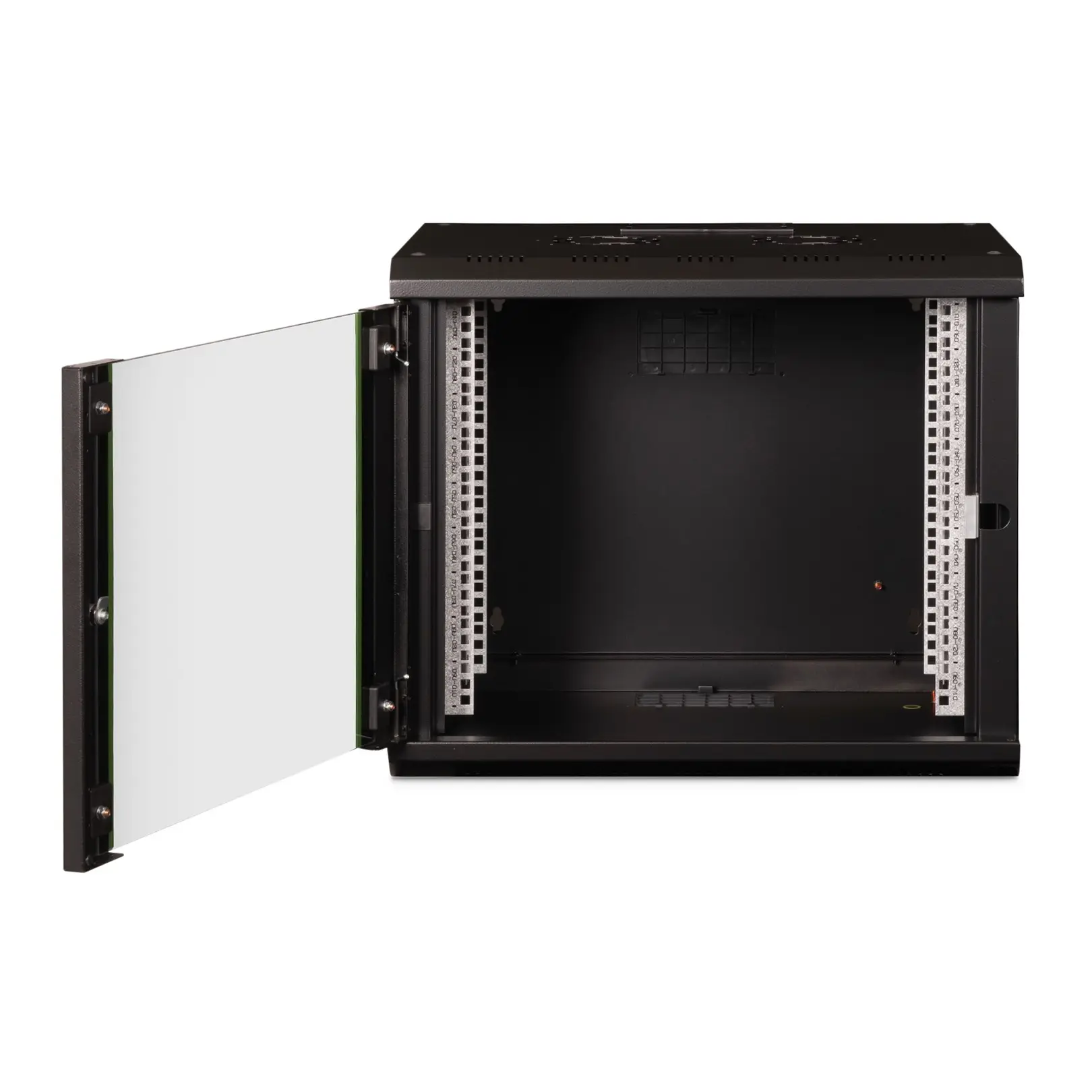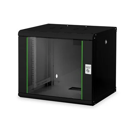 The DIGITUS® Unique Series is made for high demand IT-Infrastructure Solutions - designed and developed on highest standard in Germany- Robust steel construction for sturdy wall mounting- Lockable safety-glass door with steel frame- Side panels are lockable and removableThe network cabinets for wall installation from the Unique series were developed for especially convenient and flexible network cabling. There is a sliding cable inlet with foam rubber seal in the roof of each cabinet. The back wall and floor plate are equipped with pre-cut cable inlets with a plastic cover. To accommodate a fan module, the roof structure is also equipped with a pre-cut area. Two pair of galvanized 483 mm (19”) profile rails labeled with rack units readable in both directions are installed on the inside. Their depth can be adjusted. Each cabinet is made of up to 1.5 mm thick sheet steel. Coloring is done with electrostatic powder coating in the standard colors gray (RAL 7035) or jet black (RAL 9005). Removable and lockable side walls in a modular design as well as lockable and removable front door improve accessibility. The door hinges can be switched. Wall installation is accomplished in two easy work steps: The housing frame plate is bolted on the wall and then connected with the housing. With optionally available levelling feet or casters, the wall housings from the Unique series can also be used as a free-standing unit.