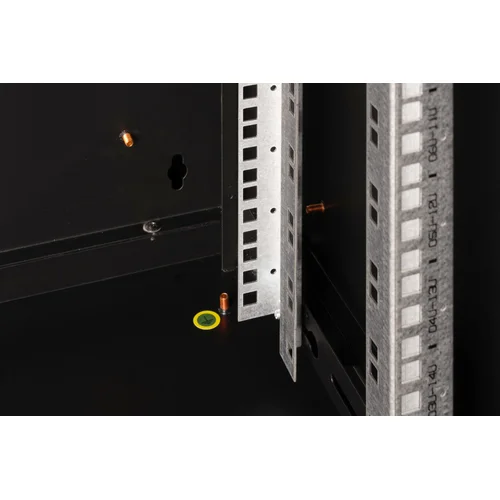 The DIGITUS® Unique Series is made for high demand IT-Infrastructure Solutions - designed and developed on highest standard in Germany- Robust steel construction for sturdy wall mounting- Lockable safety-glass door with steel frame- Side panels are lockable and removableThe network cabinets for wall installation from the Unique series were developed for especially convenient and flexible network cabling. There is a sliding cable inlet with foam rubber seal in the roof of each cabinet. The back wall and floor plate are equipped with pre-cut cable inlets with a plastic cover. To accommodate a fan module, the roof structure is also equipped with a pre-cut area. Two pair of galvanized 483 mm (19”) profile rails labeled with rack units readable in both directions are installed on the inside. Their depth can be adjusted. Each cabinet is made of up to 1.5 mm thick sheet steel. Coloring is done with electrostatic powder coating in the standard colors gray (RAL 7035) or jet black (RAL 9005). Removable and lockable side walls in a modular design as well as lockable and removable front door improve accessibility. The door hinges can be switched. Wall installation is accomplished in two easy work steps: The housing frame plate is bolted on the wall and then connected with the housing. With optionally available levelling feet or casters, the wall housings from the Unique series can also be used as a free-standing unit.