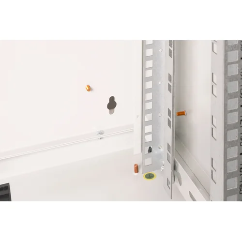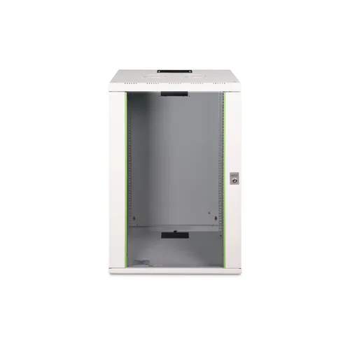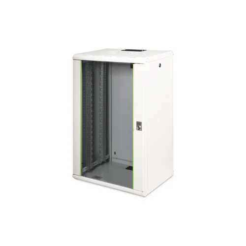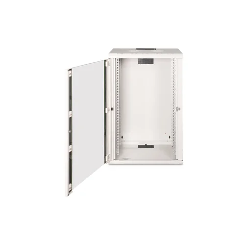 The DIGITUS® Unique Series is made for high demand IT-Infrastructure Solutions - designed and developed on highest standard in Germany- Robust steel construction for sturdy wall mounting- Lockable safety-glass door with steel frame- Side panels are lockable and removableThe network cabinets for wall installation from the Unique series were developed for especially convenient and flexible network cabling. There is a sliding cable inlet with foam rubber seal in the roof of each cabinet. The back wall and floor plate are equipped with pre-cut cable inlets with a plastic cover. To accommodate a fan module, the roof structure is also equipped with a pre-cut area. Two pair of galvanized 483 mm (19”) profile rails labeled with rack units readable in both directions are installed on the inside. Their depth can be adjusted. Each cabinet is made of up to 1.5 mm thick sheet steel. Coloring is done with electrostatic powder coating in the standard colors gray (RAL 7035) or jet black (RAL 9005). Removable and lockable side walls in a modular design as well as lockable and removable front door improve accessibility. The door hinges can be switched. Wall installation is accomplished in two easy work steps: The housing frame plate is bolted on the wall and then connected with the housing. With optionally available levelling feet or casters, the wall housings from the Unique series can also be used as a free-standing unit.
