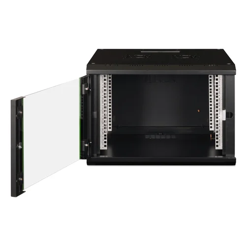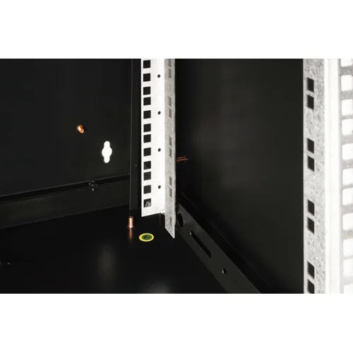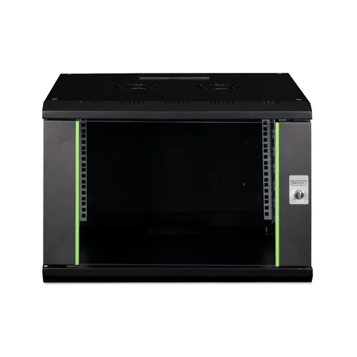 The DIGITUS® Unique Series is made for high demand IT-Infrastructure Solutions - designed and developed on highest standard in Germany- Robust steel construction for sturdy wall mounting- Lockable safety-glass door with steel frame- Side panels are lockable and removableThe network cabinets for wall installation from the Unique series were developed for especially convenient and flexible network cabling. There is a sliding cable inlet with foam rubber seal in the roof of each cabinet. The back wall and floor plate are equipped with pre-cut cable inlets with a plastic cover. To accommodate a fan module, the roof structure is also equipped with a pre-cut area. Two pair of galvanized 483 mm (19”) profile rails labeled with rack units readable in both directions are installed on the inside. Their depth can be adjusted. Each cabinet is made of up to 1.5 mm thick sheet steel. Coloring is done with electrostatic powder coating in the standard colors gray (RAL 7035) or jet black (RAL 9005). Removable and lockable side walls in a modular design as well as lockable and removable front door improve accessibility. The door hinges can be switched. Wall installation is accomplished in two easy work steps: The housing frame plate is bolted on the wall and then connected with the housing. With optionally available levelling feet or casters, the wall housings from the Unique series can also be used as a free-standing unit.