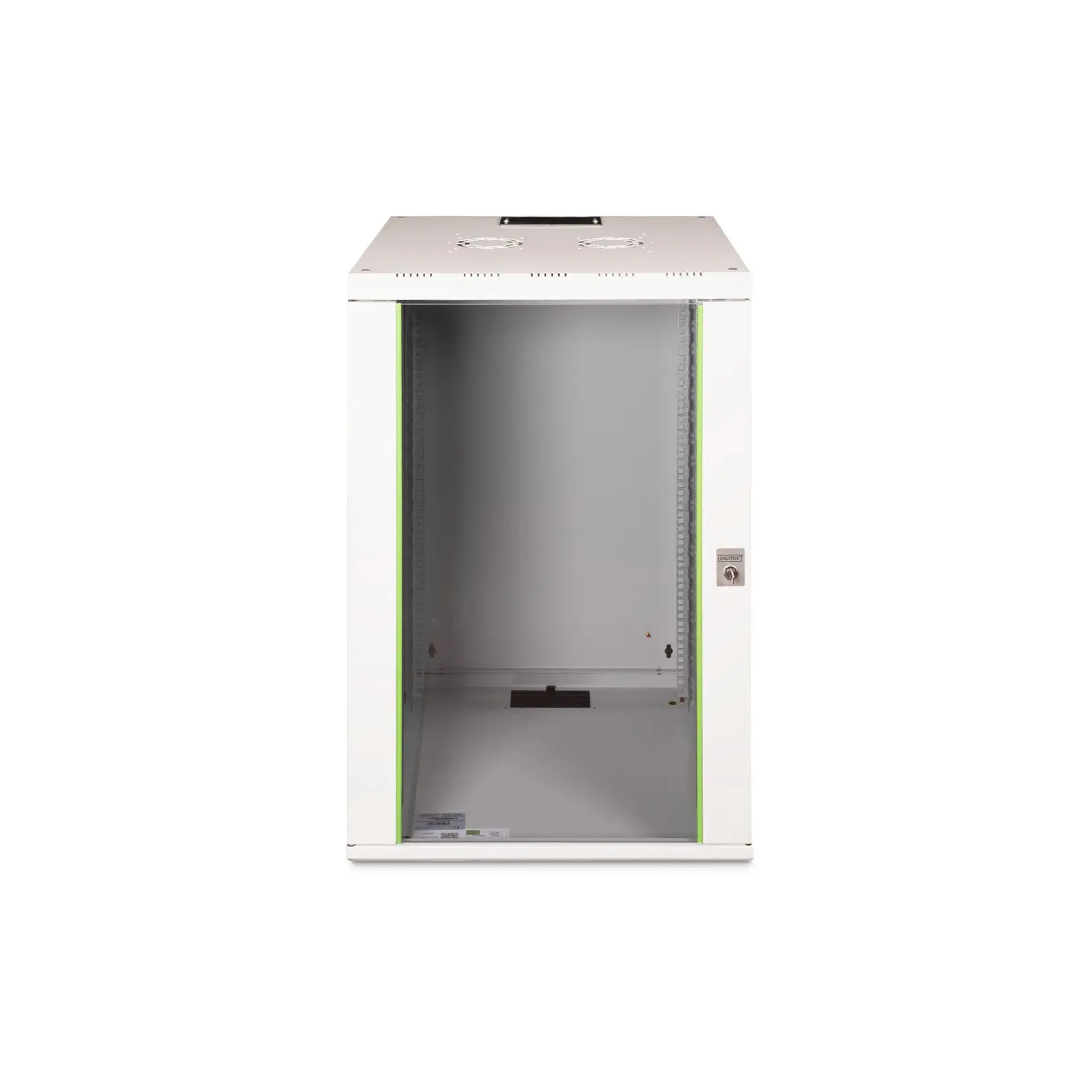The DIGITUS® Unique Series is made for high demand IT-Infrastructure Solutions - designed and developed on highest standard in Germany- Robust steel construction for sturdy wall mounting- Lockable safety-glass door with steel frame- Side panels are lockable and removableThe network cabinets for wall installation from the Unique series were developed for especially convenient and flexible network cabling. There is a sliding cable inlet with foam rubber seal in the roof of each cabinet. The back wall and floor plate are equipped with pre-cut cable inlets with a plastic cover. To accommodate a fan module, the roof structure is also equipped with a pre-cut area. Two pair of galvanized 483 mm (19”) profile rails labeled with rack units readable in both directions are installed on the inside. Their depth can be adjusted. Each cabinet is made of up to 1.5 mm thick sheet steel. Coloring is done with electrostatic powder coating in the standard colors gray (RAL 7035) or jet black (RAL 9005). Removable and lockable side walls in a modular design as well as lockable and removable front door improve accessibility. The door hinges can be switched. Wall installation is accomplished in two easy work steps: The housing frame plate is bolted on the wall and then connected with the housing. With optionally available levelling feet or casters, the wall housings from the Unique series can also be used as a free-standing unit.