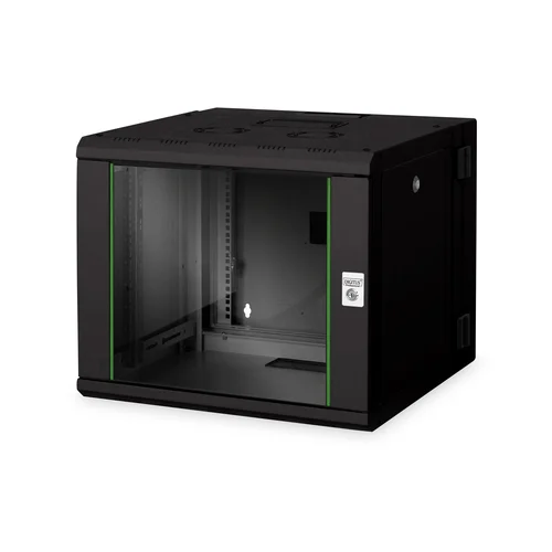 The DIGITUS® Unique Series is made for high demand IT-Infrastructure Solutions - designed and developed on highest standard in Germany- Robust steel construction for sturdy wall mounting- Lockable safety-glass door with steel frame- Side panels are lockable and removableThe network cabinets for wall installation from the Unique series were developed for especially convenient and flexible network cabling. Thanks to the integrated hinge in the back frame, the housing can be folded to the side if needed, for example in order to easily carry out assembly work in the back area of the cabinet. There is a sliding cable inlet with foam rubber seal in the roof of each cabinet. The back wall and floor plate are equipped with pre-cut cable inlets with a plastic cover. In addition, the back frame is equipped with brush management panels on the top and bottom. To accommodate a fan module, the roof structure is also equipped with a pre-cut area. One pair of galvanized 483 mm (19”) profile rails labeled with rack units readable in both directions are installed on the inside. Their depth can be adjusted. The back frame also has a 483 mm (19”) perforation. Each cabinet is made of up to 1.5 mm thick sheet steel. Coloring is done with electrostatic powder coating in the standard colors gray (RAL 7035) or jet black (RAL 9005). Removable and lockable side walls in a modular design as well as lockable and removable front door improve accessibility. The door hinges can be switched. Wall installation is accomplished in two easy work steps: The housing frame plate is bolted on the wall to open in either direction and then connected with the housing. With optionally available levelling feet or casters, the wall housings from the Unique series can also be used as a free-standing unit.