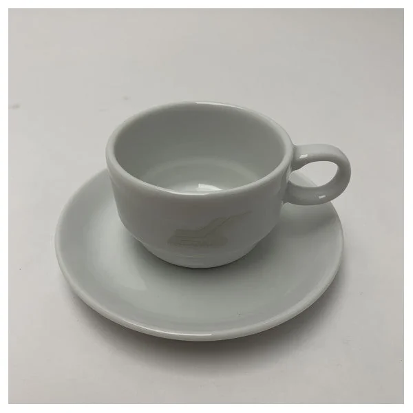 - Dimensions: standard coffee cup size with matching saucer
