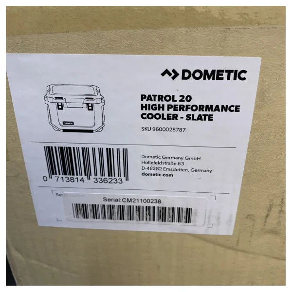 The Patrol 20 cooler combines the functionality of a professional cooler with a handy size. The total capacity of this model is 19 litres. The article number of this Slate version is 9600028787. The dimensions of the cooler are as follows: the depth is 363 millimetres, the height is 377 millimetres, and the width is 525 millimetres. With a net weight of 7.60 kilograms, the Dometic Patrol 20 is sturdy yet portable for all your outdoor activities.