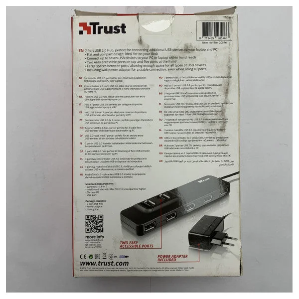 This high-quality Trust 205763 USB hub with 7 ports offers an excellent solution for easily and efficiently connecting multiple USB devices. With its compact and user-friendly design, this hub is ideal for maritime environments where reliable connectivity and space-saving are important. Thanks to the included power adapter, the hub operates stably, even when all ports are in use.