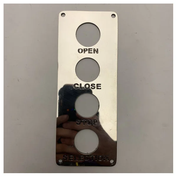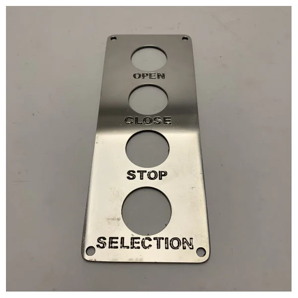 This marine control panel is made from high-quality AISI 316 stainless steel and offers excellent durability and corrosion resistance, ideal for use in saltwater environments. The panel is easy to install and provides clear and safe operation of ship installations, thanks to the clearly engraved functions OPEN, CLOSE, STOP, and SELECTION.