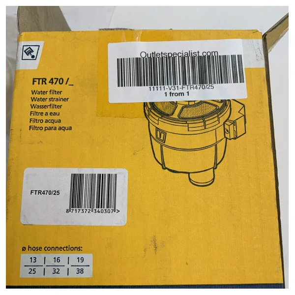 The Vetus FTR470/25 Marine Sea Water Filter 25.4 mm - Sea Water Strainer ensures clean and reliable seawater in your pipes. This high-quality sea water filter is designed for long-term use and provides the necessary protection against dirt and blockages of your pumps and equipment.Features & Specifications:- Suitable for seawater with a diameter of 25.4 mm- Made of durable plastic- Easy to clean and maintain- Built-in connections for easy installation- Robust housing for optimal protection- Transparent cover for checking filter status- Removable interior for quick access to the filter elements- UV resistant to prevent discolouration and wear- Compact and space-saving design- Includes mounting brackets for securing in the correct positionWhy choose this product?With the Vetus FTR470/25 Sea Water Strainer, you can enjoy your sailing trips without worries about polluted or faulty seawater. The filter ensures a constant supply of clean and clear water for all your applications on board. With durable materials and handy features, this filter is a smart choice for any boat. Choose reliability and comfort with the Vetus FTR470/25 Sea Water Strainer.