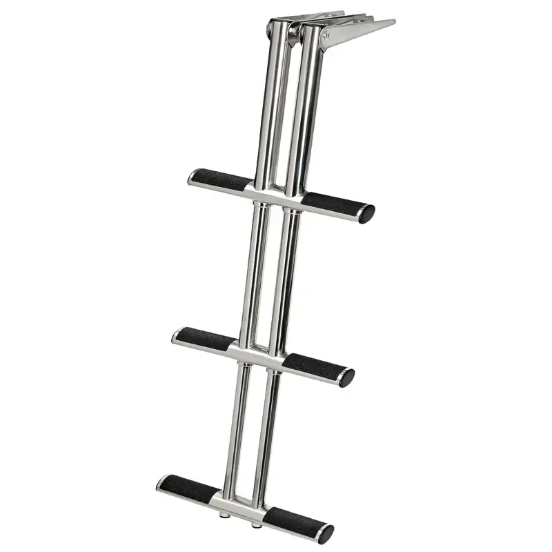 Compact telescopic ladder with anti-slip steps, perfect for scuba diving and water sports.