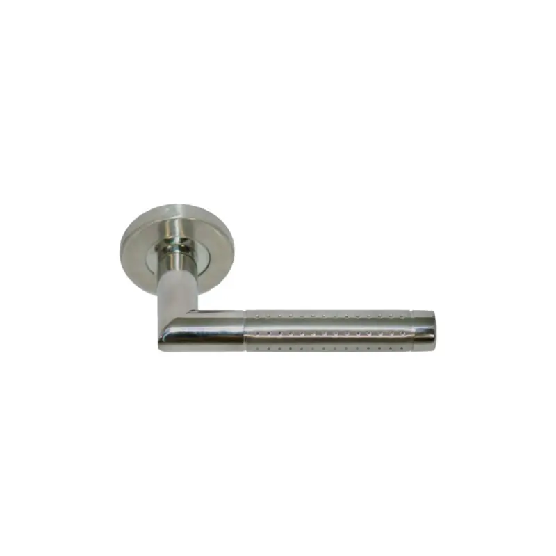 Barsac model handles - stainless steel 304 two-tone satin x2 a modern design decorated with punches perfect for equipping every door in your home. Its two-tone finish allows it to fit into any room.