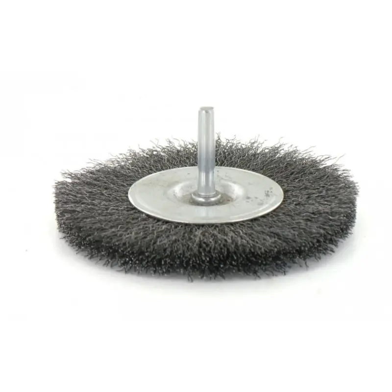Circular steel brush with a diameter of 100 mm, the structure of the flexible steel wires allows for great versatility of use and controlled aggressiveness for all finishing operations, particularly on hard-to-reach surfaces. This brush will help you eliminate rust, clean metals and stone, and prepare for welding and brazing work.