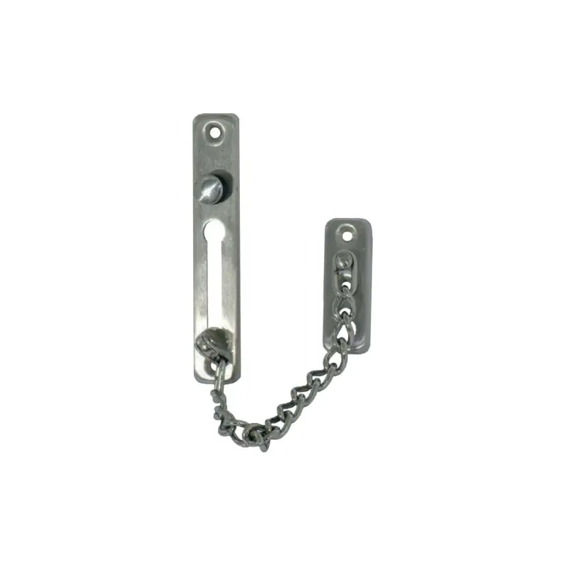 Door chain latch - brushed stainless steel finish, this chain latch will allow you to open your door safely.