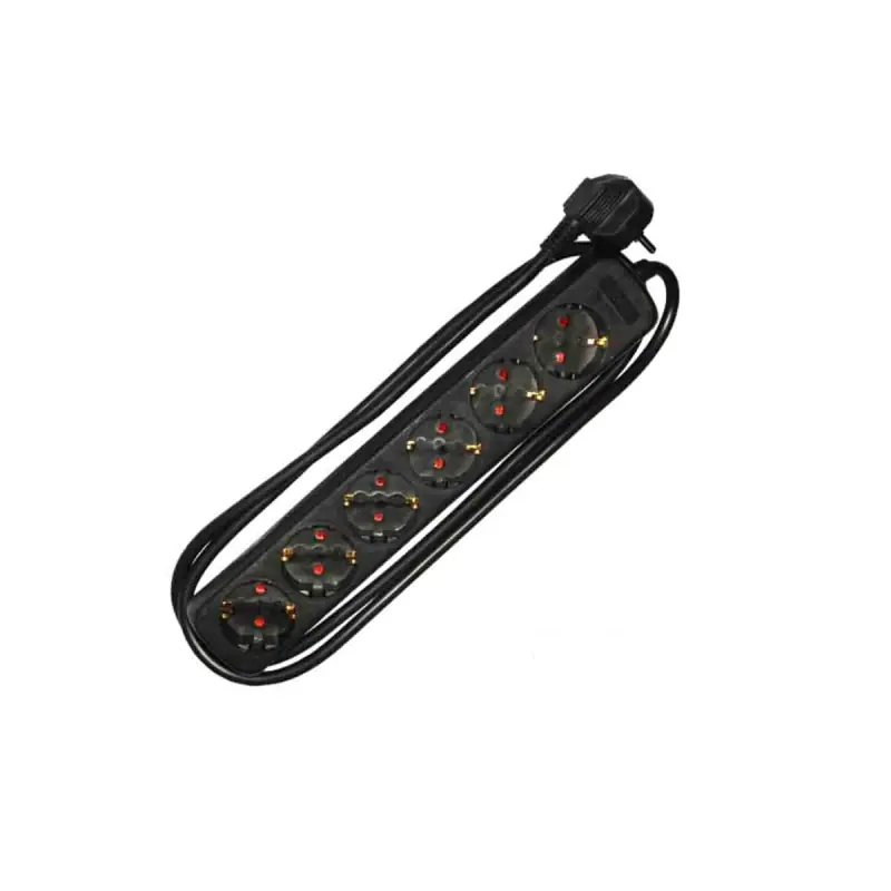 - Composed of six Schuko sockets distributing earth through side tabs.