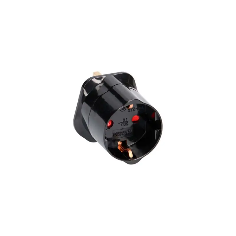 Adapter - UK-European plug - Black - EX040 ideal for when you travel to easily connect your electronic devices. It will ensure you always have battery on your phones, tablets, or others.