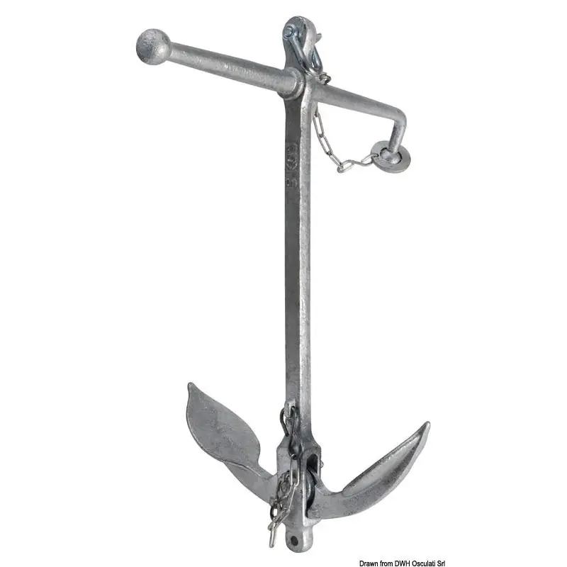 The Foldable Boom Jib Boat Anchor by Divers is a robust and modular anchor designed to provide excellent holding power for various types of boats. Constructed from hot-dip galvanized steel, it offers enhanced resistance to corrosion and wear. The anchor features a hinged arm, allowing for easy folding and compact storage when not in use. Its design ensures adaptability to all types of seabeds, including sand, mud, seaweed, and rocks, delivering optimal holding capabilities. The anchor's optimized shape and low center of gravity contribute to superior penetration and stability. Ideal for all boat types, it can be conveniently stored in a locker or on the deck due to its compact size.