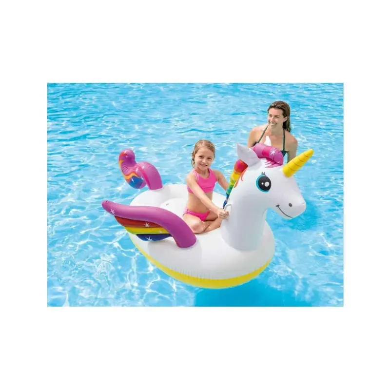 Inflatable unicorn float - 201x140x97 cm have fun with this unicorn-shaped float. This ride-on float is equipped with 2 handles for holding on. Stand out with this original float that is suitable for both adults and children. Its size ensures stability.