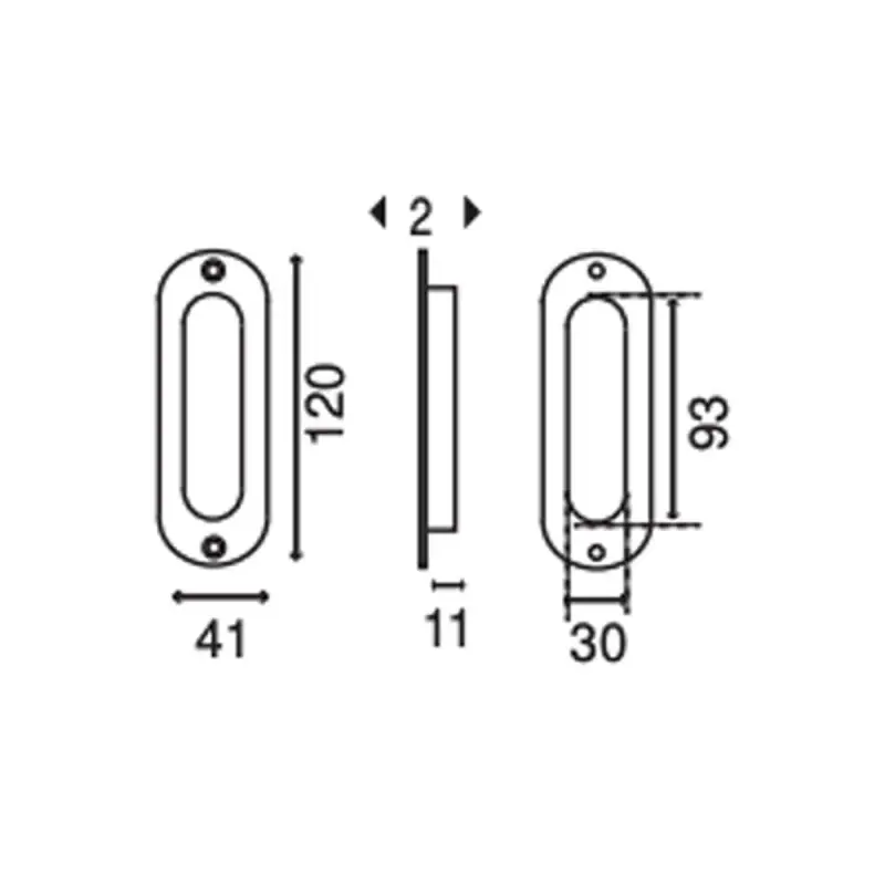 Oval recessed cup handles - Brushed Stainless Steel, these modern design handles will perfectly suit your sliding wooden doors or any type of layout.