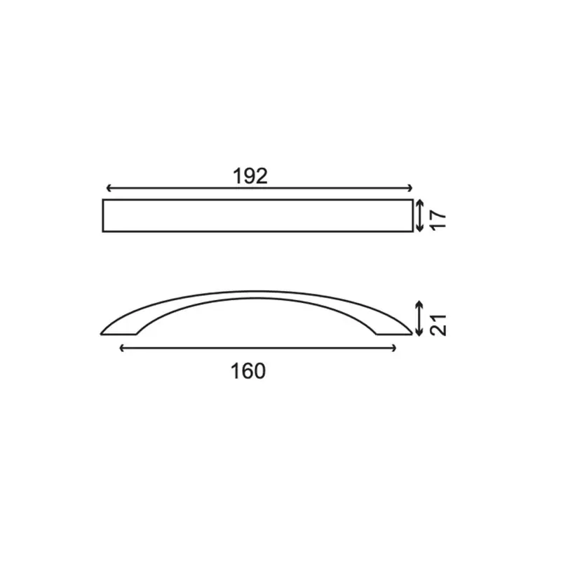 P3004 Handle for Furniture - 160mm - Matt Nickel Finish flat curved quality handle for furniture with a Matt Nickel finish offering a modern design.