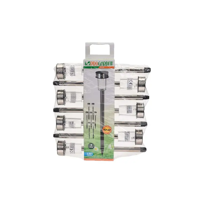 Pack of 7 Solar Stakes in Stainless Steel ideal for highlighting your garden, these stakes recharge themselves using solar energy.