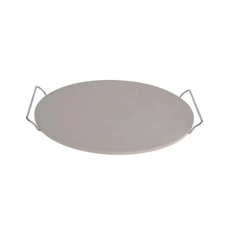 Pizza stone with handles for barbecue - Metal - Diameter 33 cm stone that allows you to cook your pizzas on the barbecue. Easy to use thanks to the handles. The stone retains heat and keeps your pizza warm and crispy.